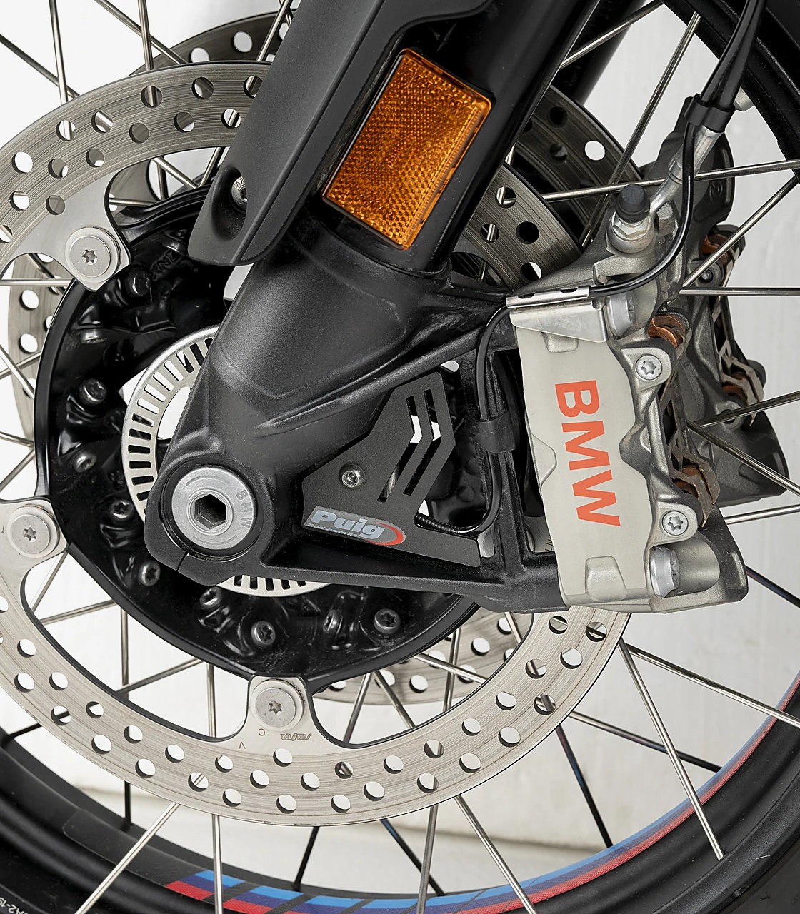 Puig has developed this ABS sensor protector to safeguard one of the most vulnerable areas of the front wheel against stones, mud, and other potential impacts. Crafted from premium aluminum with a textured black finish, it delivers durable protection that integrates seamlessly with the motorcycle’s design while helping preserve optimal braking performance.