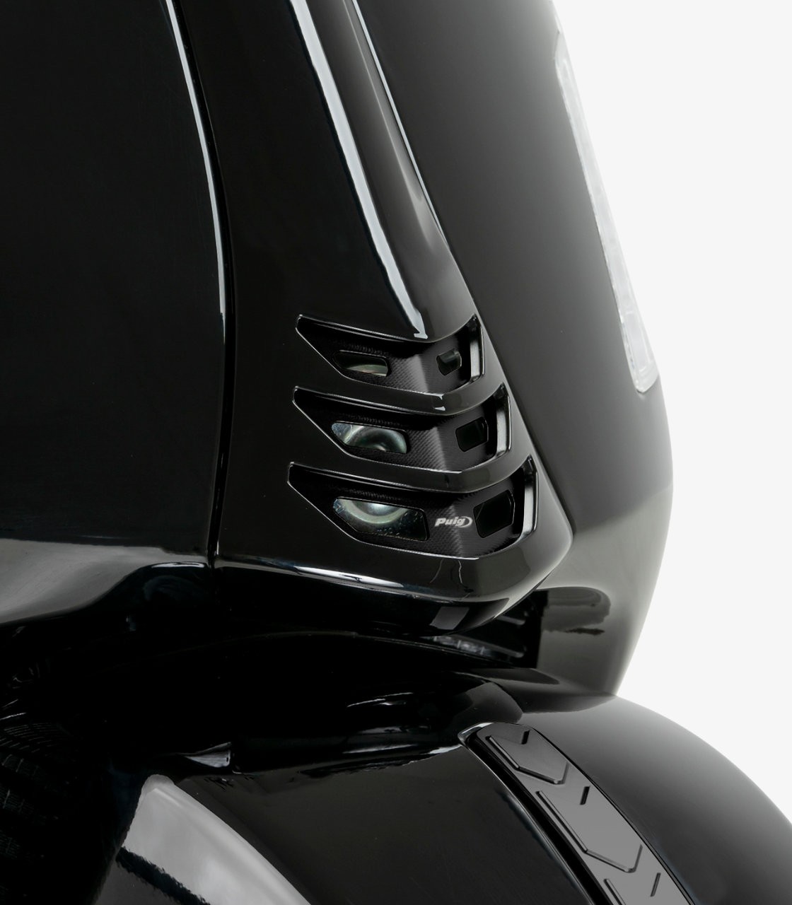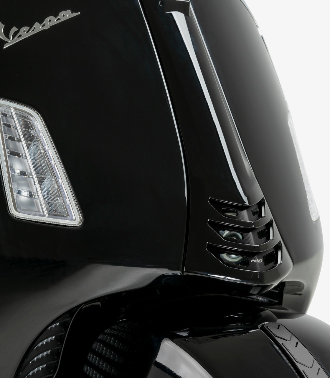 The Puig horn cover for Vespa is an accessory designed to enhance the appearance of one of the scooter’s most visible areas. Its design preserves the classic character that defines Vespa while adding a refined and modern touch that elevates the overall look of the bike.