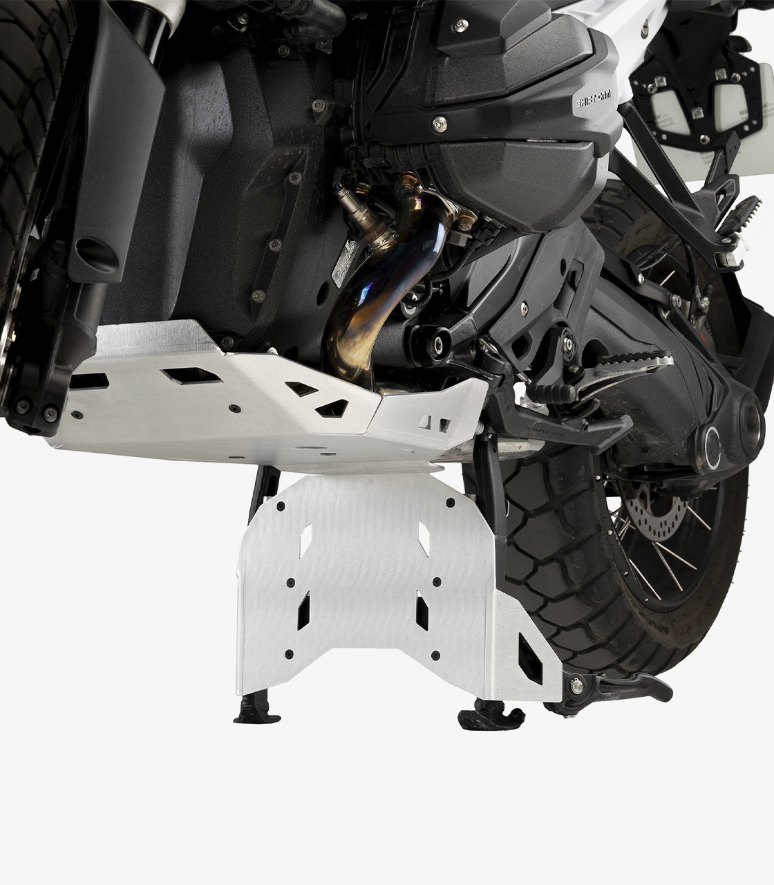 Manufactured from 4 mm thick premium aluminum, this center stand skid plate extension is designed to increase protection for the lower area of the motorcycle during trail and off-road use. Its structure helps protect against stones, mud, sand, and impacts, while its design incorporates openings that improve drainage and cooling.