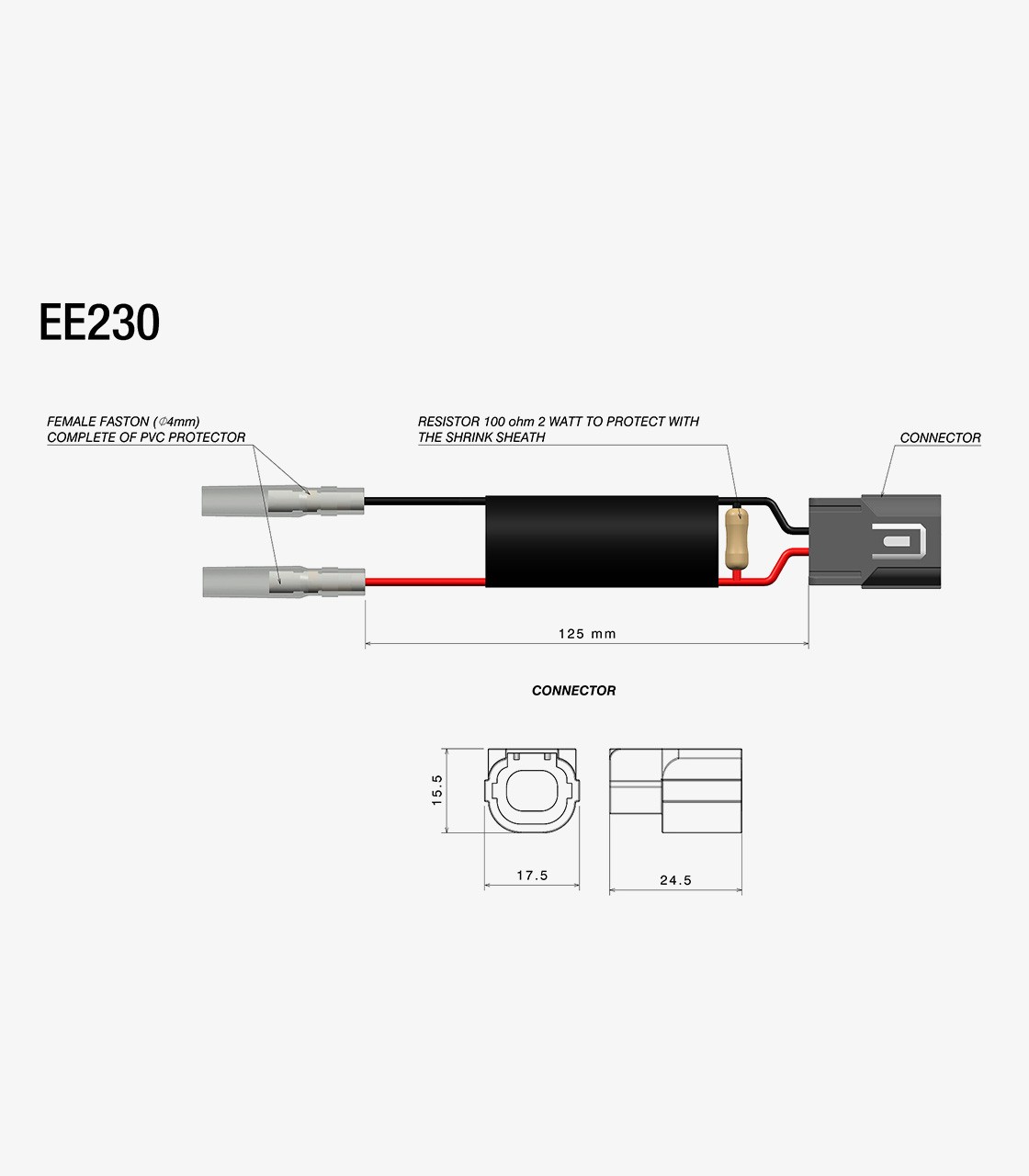 The Rizoma wiring kit with resistors is essential for the correct installation of Rizoma turn signals, as well as Rizoma mirrors with integrated turn signals. It is recommended to check the technical information before purchasing. Each kit includes two types of wiring, and for the installation of four turn signals, two kits will be required. Without this resistor system, the turn signals would not operate at the correct flashing frequency.