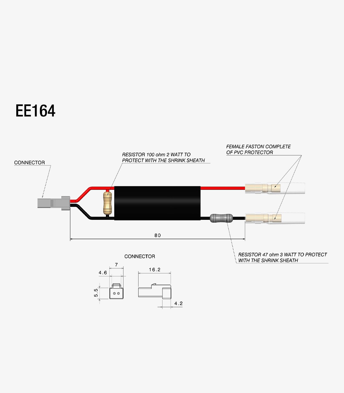 Essential for the proper installation of Rizoma turn signals and mirrors with integrated turn signals, the Rizoma wiring kit with resistors ensures correct operation. It is recommended to verify technical compatibility before purchase. Each kit contains two types of wiring, and if four turn signals are installed, two kits will be necessary. Without this system, the turn signals will flash at an incorrect rate.