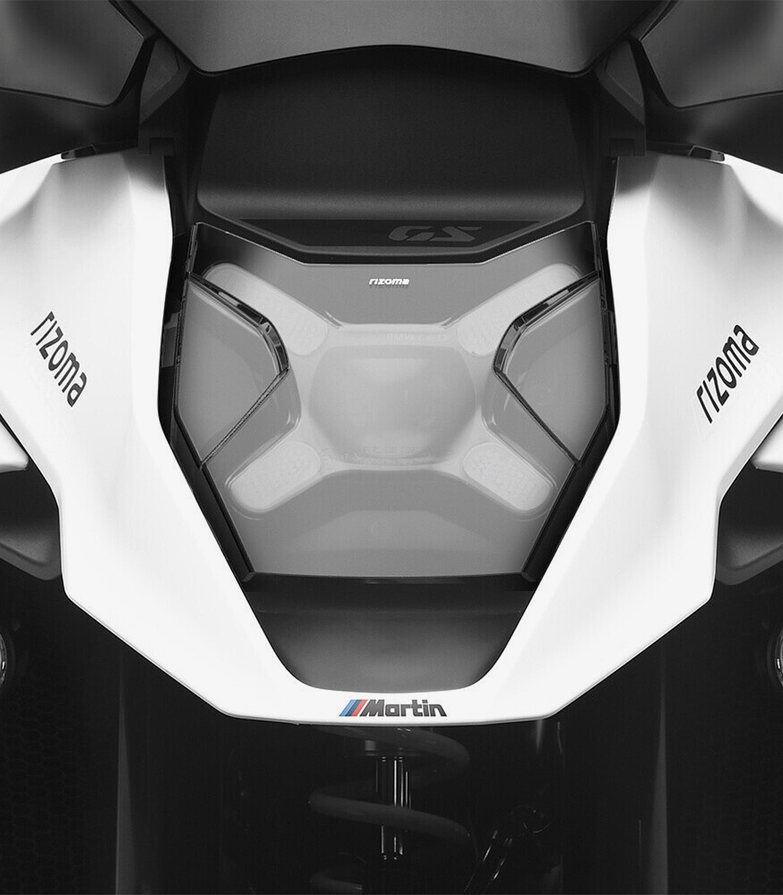 Rizoma presents this front headlight guard with a design focused on balancing practical use and aesthetic finish. Thanks to its quick-fix mounting system and high-quality LEXAN® protector, it effectively protects the GS headlight.