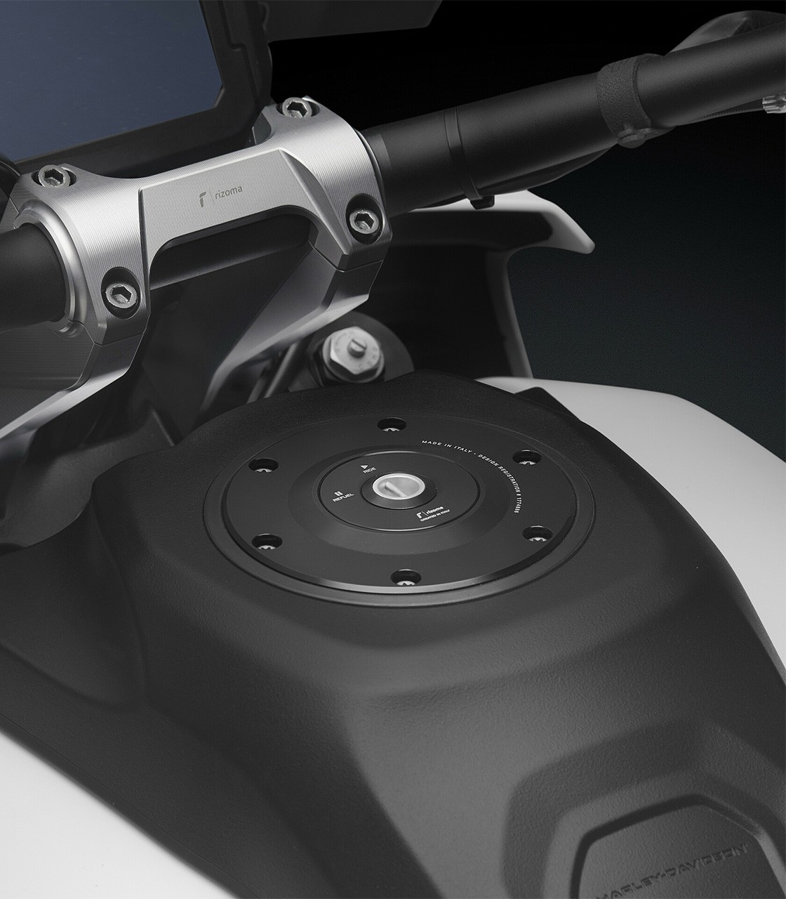 Crafted entirely from machined aluminum from a single solid piece, the Rizoma fuel tank cap combines elegant design with durable materials. The anodized treatment and laser details deliver high visual durability and an exclusive finish that highlights the motorcycle’s character.