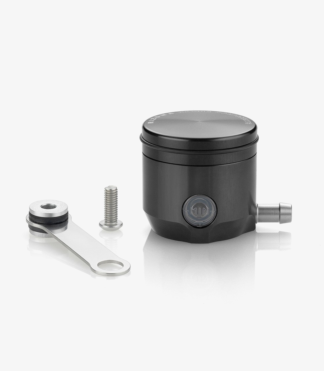 The Rizoma fluid reservoir is a high-end solution for brake or clutch systems, created to improve both visual appeal and overall performance. Crafted from CNC-machined aluminum with an anodized finish, it offers a clean, sporty aesthetic, clear fluid-level visibility, and secure mounting.