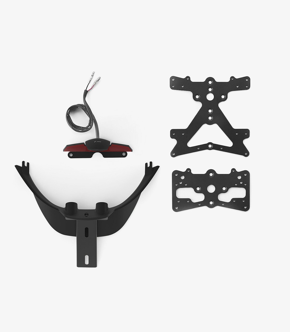 Rizoma license plate holders combine elegance, strength, and a sporty design that improves the overall aesthetics of the bike. They include homologated SMD LED lighting and adapt to various regulations thanks to their configurable options. Some references include only the European or American plate, while others feature both. An ideal choice for those seeking quality, style, and compatibility.