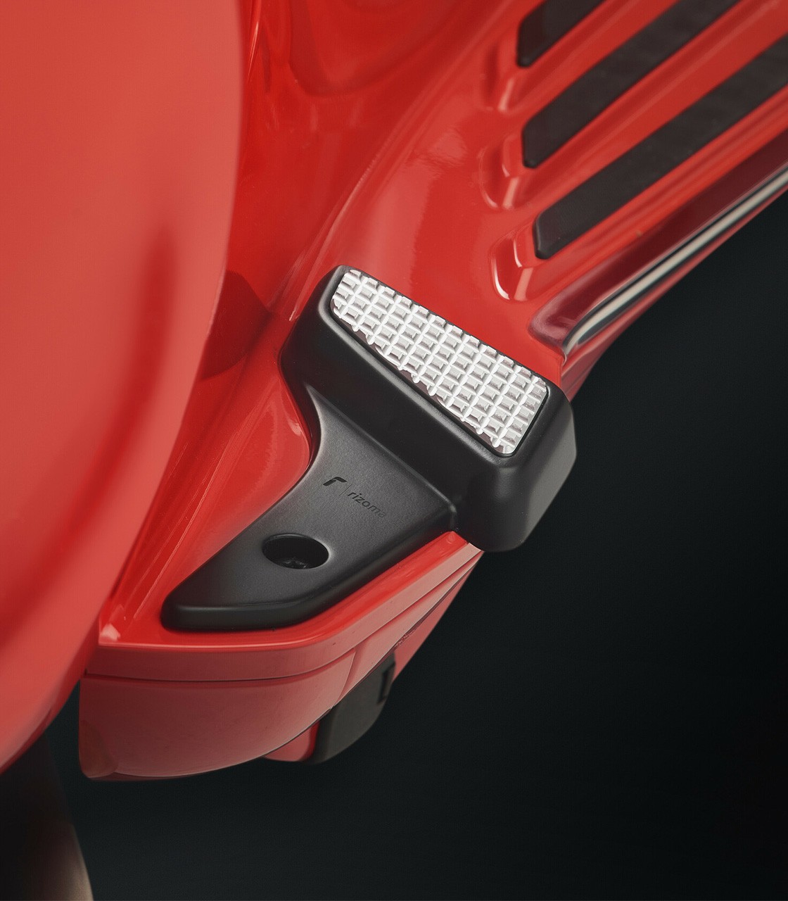 These Rizoma footpegs, crafted from precisely CNC-machined aluminum, are designed to optimize control and stability during riding. Their surface incorporates an anti-slip finish that improves foot grip, while the contrasting details highlight the support area and add a stylish touch. The result is a lightweight, durable, and functional part that blends design and performance for a firmer and more comfortable footing.