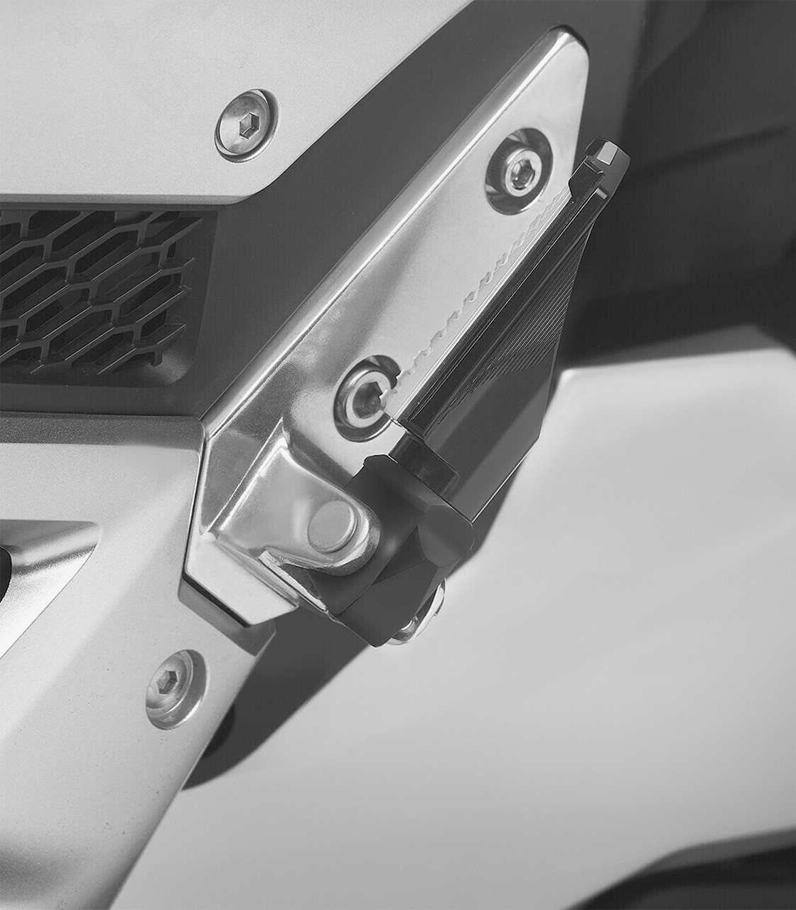 Rizoma footpeg adapters are made from CNC-machined aluminum and are designed specifically for each motorcycle model, ensuring perfect compatibility and optimal fitment. They allow Rizoma footpegs to be installed onto the OEM mounting points and come with TÜV approval.