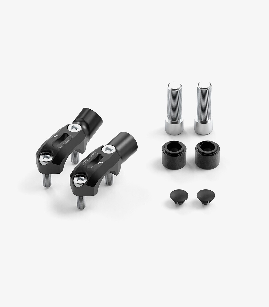 Each Stealth mirror installation kit (Naked version) is specifically designed to fit the corresponding motorcycle model, guaranteeing a precise fit and secure mounting to the handlebar. Its design follows the same aesthetic line as the mirror, providing both functionality and style. Manufactured from CNC-machined aluminum from a solid block, it offers high strength and durability.