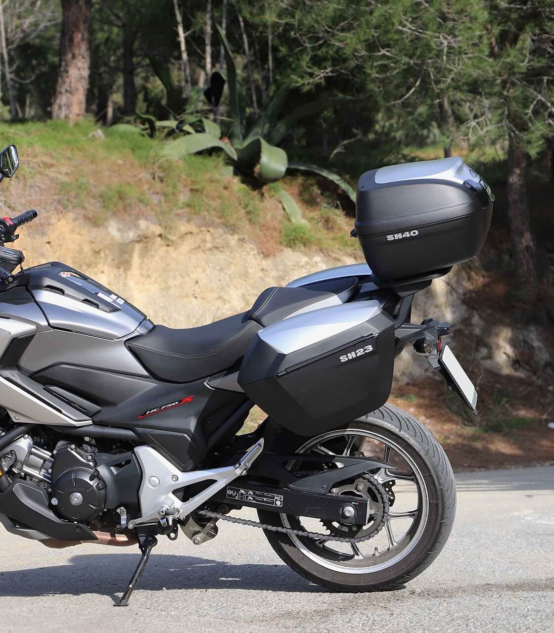 Ideal for maxi scooters and motorcycles, the SH40 ALU LOOK top case combines functionality and style. With capacity for 2 helmets (1 full-face and 1 jet), it features an aluminum-look lid—perfect for both highway rides and mountain getaways. It pairs especially well with the SH23 Alu Look side cases.