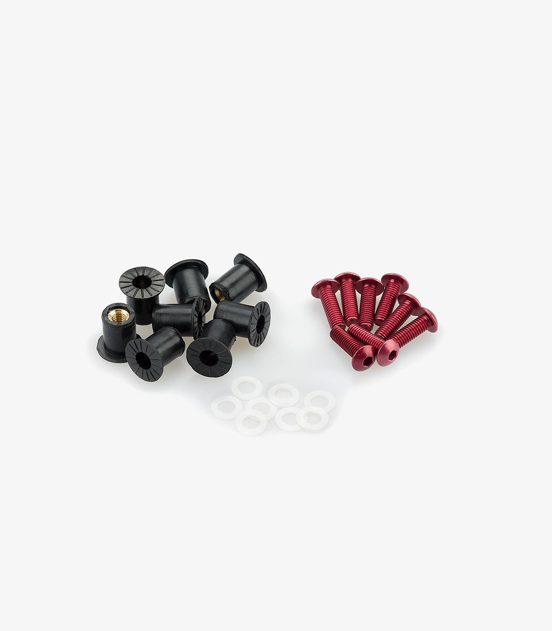 Consigue ahora el Blister Pack de 6 tornillos M5 con Silentblocks en color Rojo de Puig.