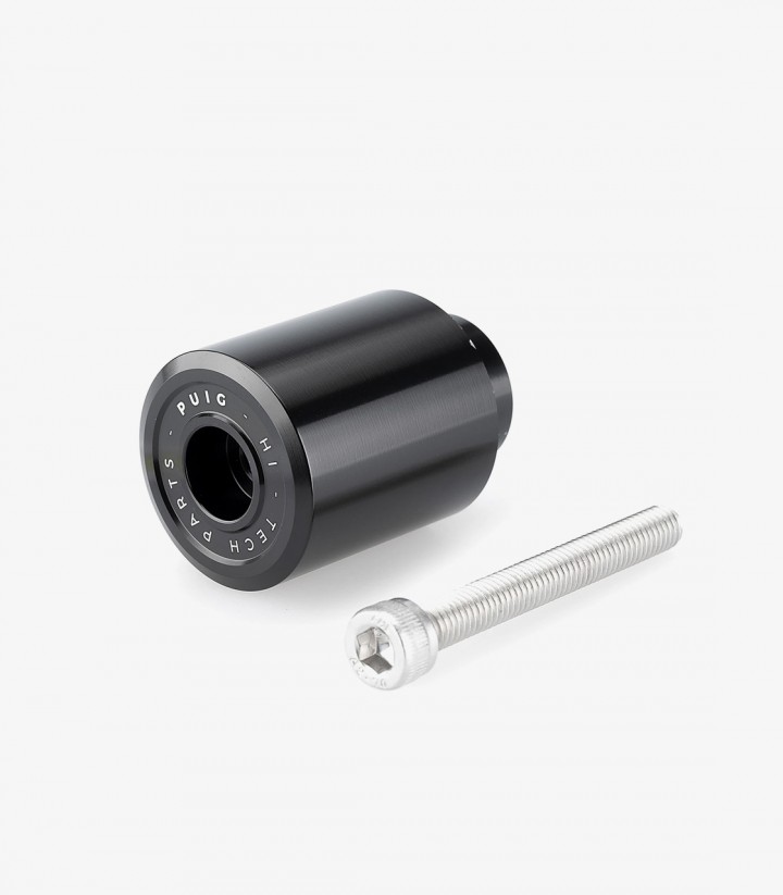 Mecanizado desde un bloque de aluminio Ergal 7075 de alto rendimiento y con acabado anodizado en color negro, este elemento sustituye el contrapeso original del lado izquierdo de la moto para mantener una simetría perfecta al instalar el protector de maneta de freno en el lado derecho.