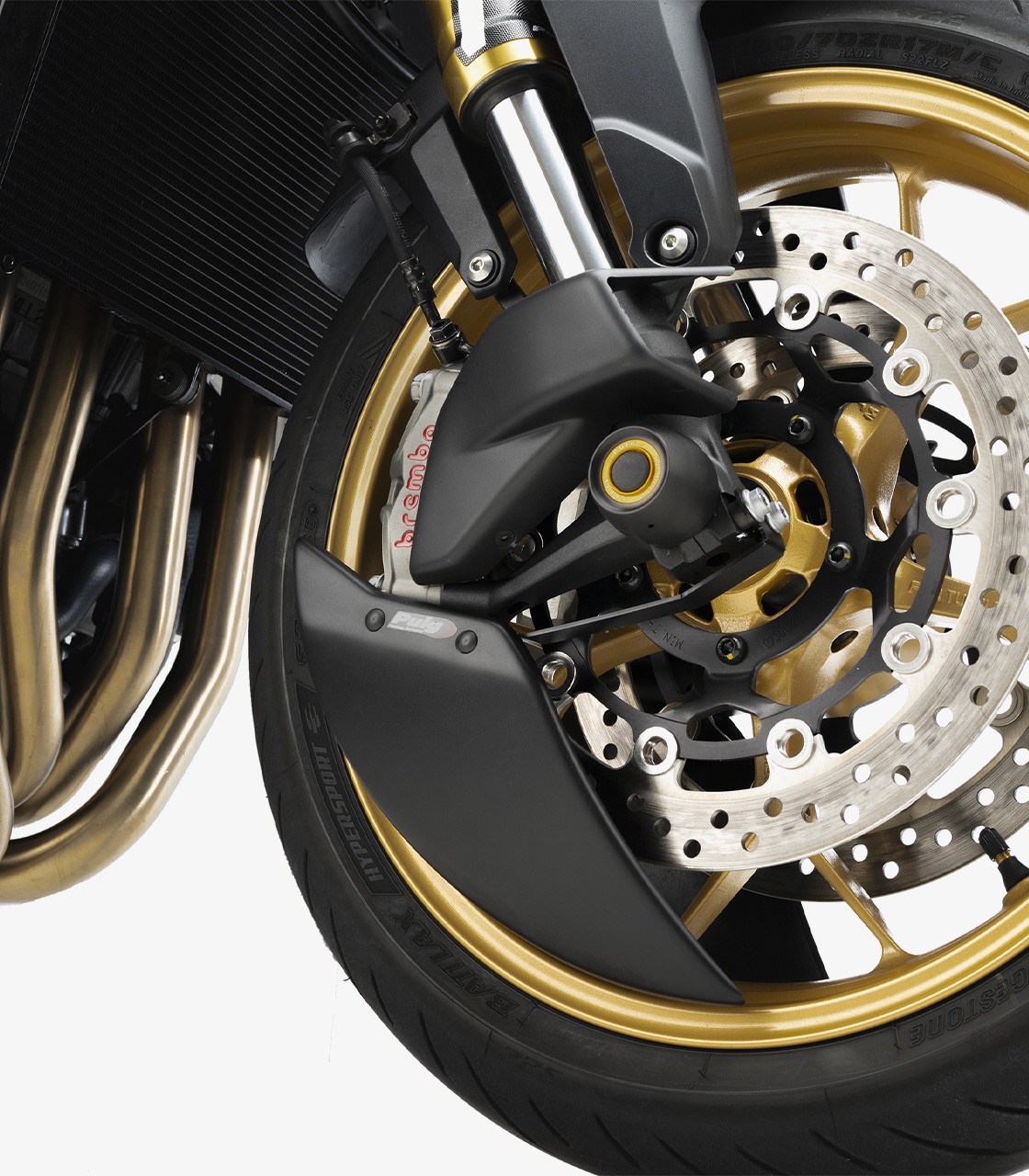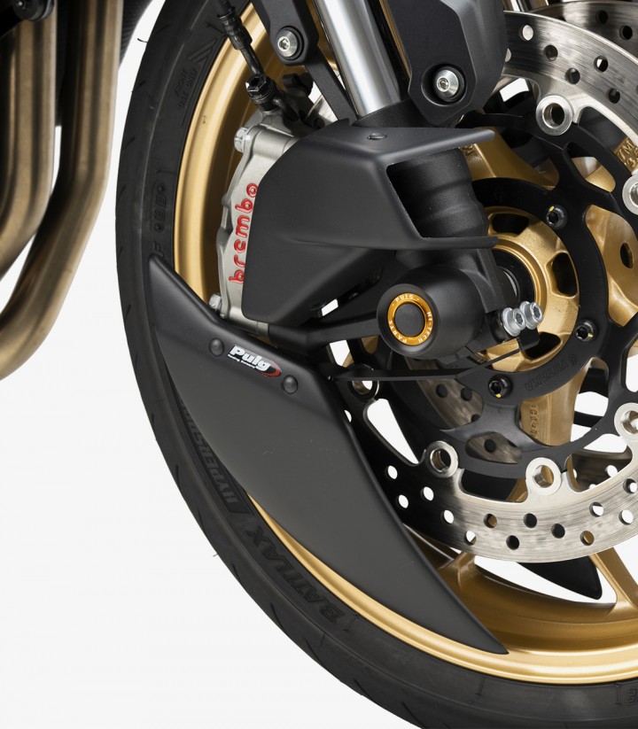 El Aero Deflector de Puig está pensado para disminuir las turbulencias de la rueda delantera y mejorar el comportamiento aerodinámico de la moto. Aporta un plus de estabilidad, precisión y confort, especialmente cuando se circula rápido. Se instala de forma sencilla y rápida, respetando las instrucciones y el par de apriete especificado.