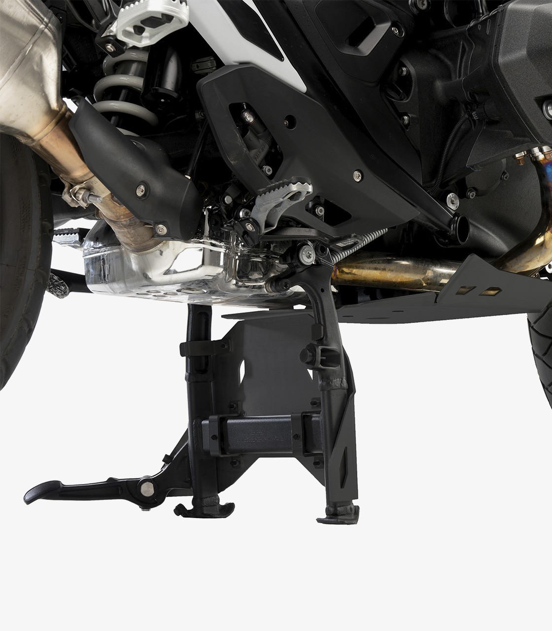 Refuerza la protección de la zona inferior de tu BMW R1300GS con la extensión Puig para caballete central.