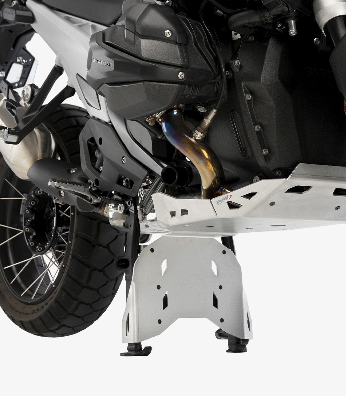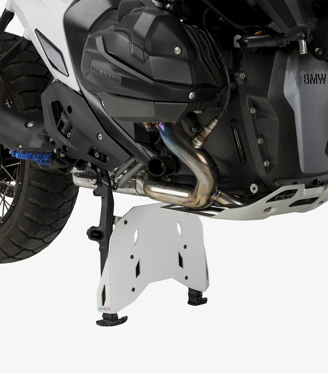 Refuerza la protección de la zona inferior de tu BMW R1300GS con la extensión Puig para caballete central.