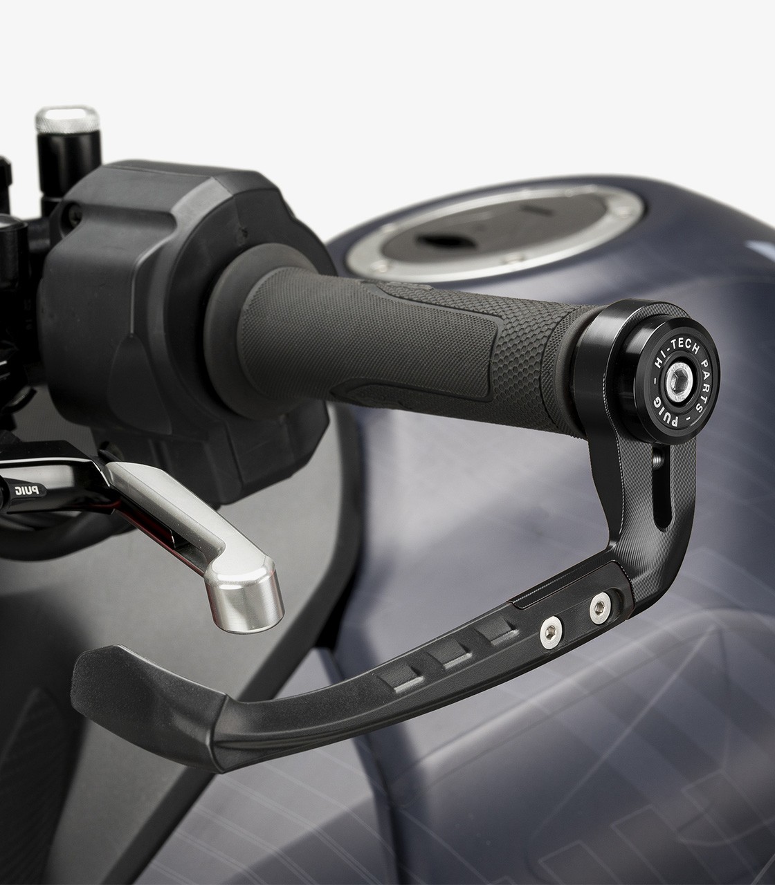 Los protectores de maneta Puig están diseñados para evitar activaciones accidentales de la maneta ante contactos fortuitos, aportando un extra de seguridad tanto en uso urbano como en conducción deportiva. Su diseño inspirado en la competición y su construcción en materiales resistentes garantizan una integración estable y estética en el manillar, mejorando la protección sin renunciar al estilo.