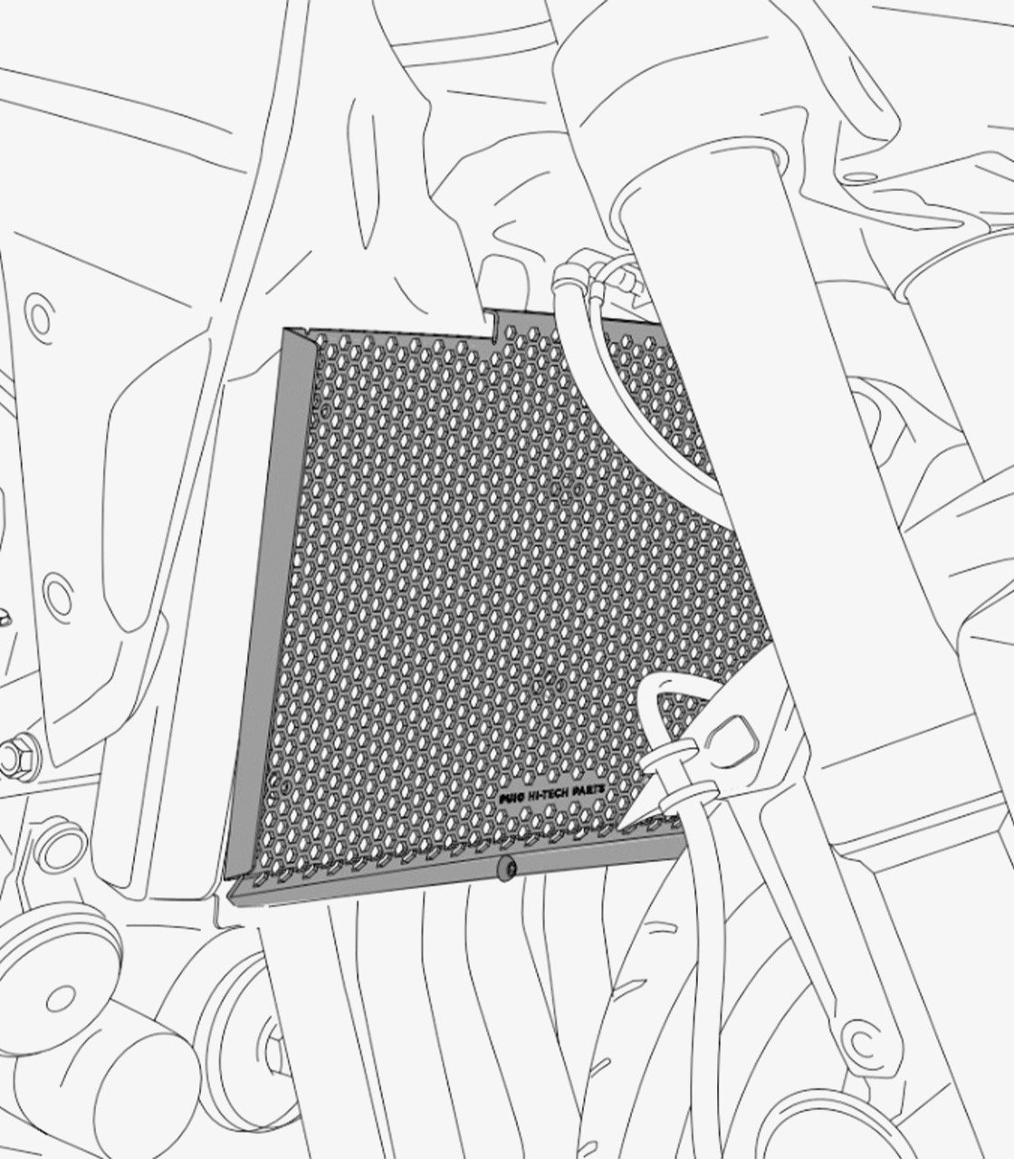 Diseñado específicamente para proteger el radiador y otras zonas delicadas de la moto, este protector actúa como una barrera eficaz ante piedras u objetos que puedan impactar durante la conducción. Su diseño perforado en forma de hexágonos permite un flujo de aire constante y eficiente, esencial para mantener la temperatura adecuada del motor sin perjudicar su rendimiento. Incluye gomas antivibración que garantizan un encaje firme y silencioso. El acabado texturizado le da un toque deportivo, al tiempo que refuerza su resistencia frente a la corrosión y al desgaste por uso. Una inversión inteligente para mantener tu moto segura en cualquier terreno.