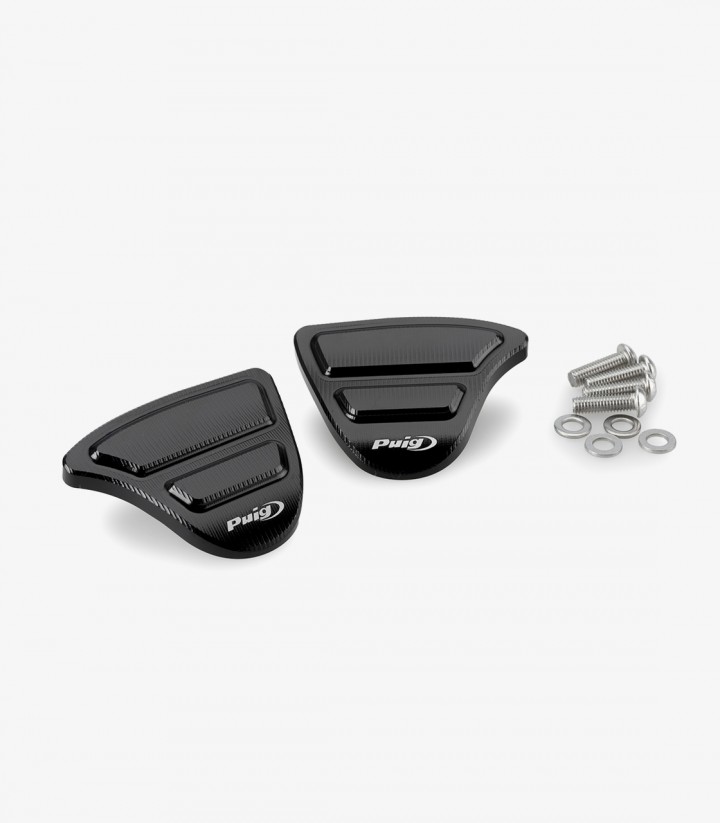 Estas tapas de retrovisor Puig completan el carenado tras retirar los espejos de origen, dejando un resultado visual más uniforme y refinado. Gracias a su diseño discreto, se integran con armonía en la silueta de la moto.